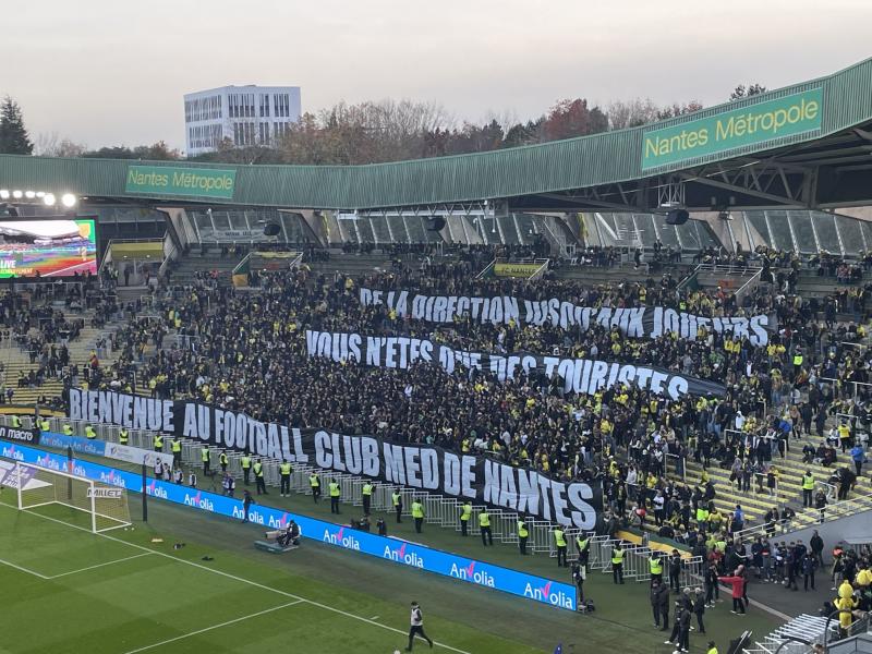 Χάος και διακοπή στο Ναντ – Χάβρη (ΦΩΤΟ) 24/11/2024 Άσχημες εικόνες στο «Μποζουάρ», όπου η αναμέτρηση της Ναντ με την Χάβρη διεκόπη στις καθυστερήσεις, με τους φιλοξενούμενους να βρίσκονται μπροστά στο σκορ με 0-2. Οι οπαδοί των καναρινιών που βρίσκονται στο πέταλο πλησίασαν σε απόσταση αναπνοής τα διαχωριστικά κιγκλιδώματα και ήταν έτοιμοι να εισβάλλουν με άσχημες διαθέσεις στον αγωνιστικό χώρο, κάτι που οδήγησε τον διαιτητή να στείλει τις δύο ομάδες άρον – άρον στα αποδυτήρια. Οι άσχημες διαθέσεις των οπαδών είχαν φανεί και πριν από την σέντρα, όταν είχαν σηκώσει πανό που έγραφε: «Από την διοίκηση, μέχρι τους παίκτες, όλοι σας δεν είστε τίποτα άλλο από… τουρίστες». ΔΙΑΒΑΣΤΕ ΕΠΙΣΗΣ