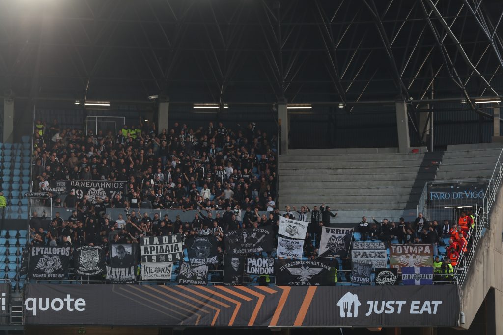 Δυναμική παρουσία των οπαδών του ΠΑΟΚ στο «Μπαλαΐδος» (ΦΩΤΟ) 02/10/2025 Το Βίγκο «βάφεται» στα ασπρόμαυρα ενόψει της αναμέτρησης της Θέλτα με τον ΠΑΟΚ, με τους οπαδούς του «δικέφαλου του Βορρά» να δίνουν δυναμικό «παρών» στις κερκίδες. Η αντίστροφη μέτρηση για τη σέντρα έχει σχεδόν ολοκληρωθεί (22:00) και οι φίλοι του ΠΑΟΚ δεν άφησαν την ομάδα τους μόνη, δημιουργώντας εντυπωσιακή ατμόσφαιρα. ΔΙΑΒΑΣΤΕ ΕΠΙΣΗΣ
