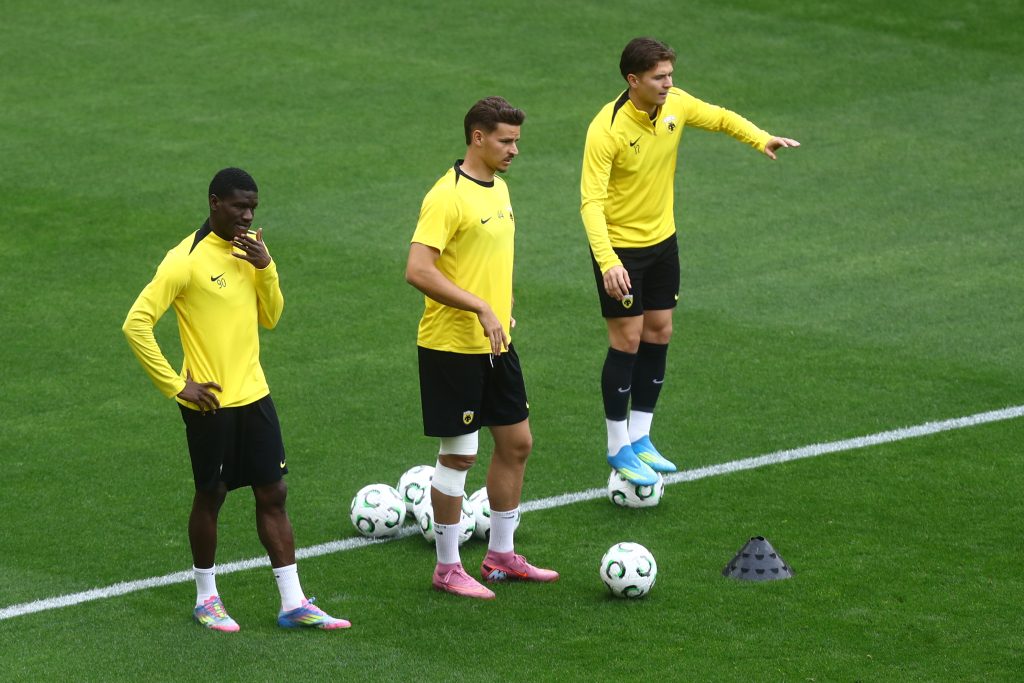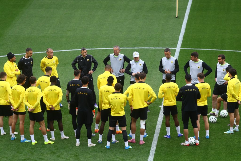 Έτοιμη για Ράγιο η ΑΕΚ – Προπονήθηκε κανονικά ο Μαρίν (ΦΩΤΟ) 15/04/2026 Με την προσοχή στραμμένη στη ρεβάνς με τη Ράγιο Βαγεκάνο, η ΑΕΚ ολοκλήρωσε την προετοιμασία της στη Νέα Φιλαδέλφεια, έχοντας τον Μαρίν κανονικά στη διάθεσή της και τις γνωστές απουσίες εκτός πλάνων. Η Ένωση προπονήθηκε στην Allwyn Arena, λίγες ώρες πριν τη μεγάλη αναμέτρηση (16/04, 22:00), με τον Σέρβο τεχνικό να επαναλαμβάνει στη συνέντευξη Τύπου την πίστη του πως η ομάδα του μπορεί να ανατρέψει το 3-0 του πρώτου αγώνα στο Βαγιέκας και να διεκδικήσει την πρόκριση στα ημιτελικά του Conference League. Στο αγωνιστικό κομμάτι, ο Ραζβάν Μαρίν συμμετείχε κανονικά στο πρόγραμμα, όπως αναμενόταν, παρά το χτύπημα που είχε αποκομίσει από το ντέρμπι στο «Γ. Καραϊσκάκης» και το γεγονός ότι είχε αγωνιστεί με ένεση στο δεύτερο μέρος του πρώτου αγώνα. Αντίθετα, εκτός παραμένει ο Πέτρος Μάνταλος λόγω μυϊκού προβλήματος από το παιχνίδι στην Ισπανία, ενώ δεν υπολογίζεται και ο Λούκα Γιόβιτς, ο οποίος είναι τιμωρημένος μετά την κάρτα που δέχθηκε στο Βαγιέκας. Αξιοσημείωτη ήταν και η παρουσία του Ρέλβας, ο οποίος εμφανίστηκε με δεμένο το δεξί του πόδι, ωστόσο συμμετείχε στο κομμάτι της προπόνησης που ήταν ανοιχτό για τα ΜΜΕ και προπονήθηκε κανονικά. ΔΙΑΒΑΣΤΕ ΕΠΙΣΗΣ