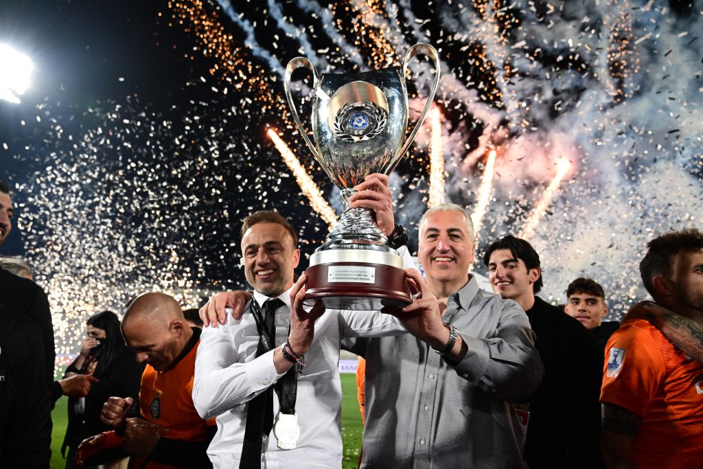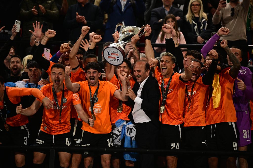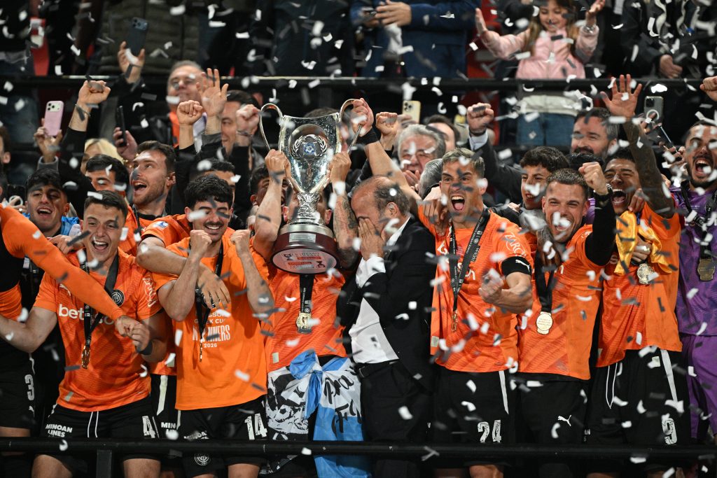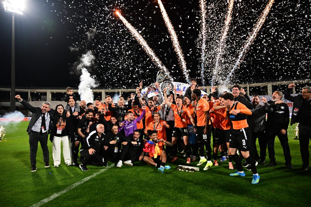 Η κορύφωση ήρθε φυσικά τη στιγμή της απονομής, όταν ο αρχηγός σήκωσε το τρόπαιο μέσα σε αποθέωση. Ο θρύλος του ΟΦΗ Νίκος Μαχλάς, μετέφερε το Κύπελλο στο βάθρο — όπως είχε κάνει και πριν από τη σέντρα — για να το παραδώσει στους νέους Κυπελλούχους, σε μια συμβολική και ιδιαίτερα φορτισμένη στιγμή.