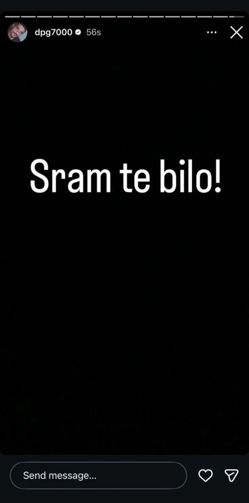 Συγκεκριμένα, περίπου πέντε λεπτά πριν από τη λήξη της αναμέτρησης, ο ισχυρός άνδρας της «πράσινης» ΚΑΕ δημοσίευσε story στο Instagram στα σλάβικα με τη φράση «Sram te bilo».