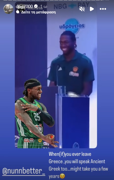 Γιαννακόπουλος: Μήνυμα για το μέλλον του Ναν στον Παναθηναϊκό! (ΦΩΤΟ) 04/12/2024 Ξετρελαμένος με τη χθεσινή μεγάλη εμφάνιση του Κέντρικ Ναν στη νίκη του Παναθηναϊκού επί της Μπαρτσελόνα (90-89), ο Δημήτρης Γιαννακόπουλος έδειξε την πρόθεσή του να κρατήσει για πολλά ακόμη χρόνια στην ομάδα τον Αμερικανό «μπομπέρ». Ποστάροντας ένα βίντεο στο οποίο ο Ναν λέει «καλησπέρα» σε άπταιστα ελληνικά, ο ισχυρός άνδρας της πράσινης ΚΑΕ σχολιάζει «… όταν (αν) ποτέ φύγεις από την Ελλάδα, θα μιλάς και αρχαία ελληνικά… Μπορεί να πάρει κάποια χρόνια». Ο Ναν είναι πλέον δεύτερος σκόρερ της Ευρωλίγκας με 18,9 πόντους ανά αγώνα, πίσω μόνο από τον Κάρσεν Έντουαρντς που έχει 19,8. ΔΙΑΒΑΣΤΕ ΕΠΙΣΗΣ