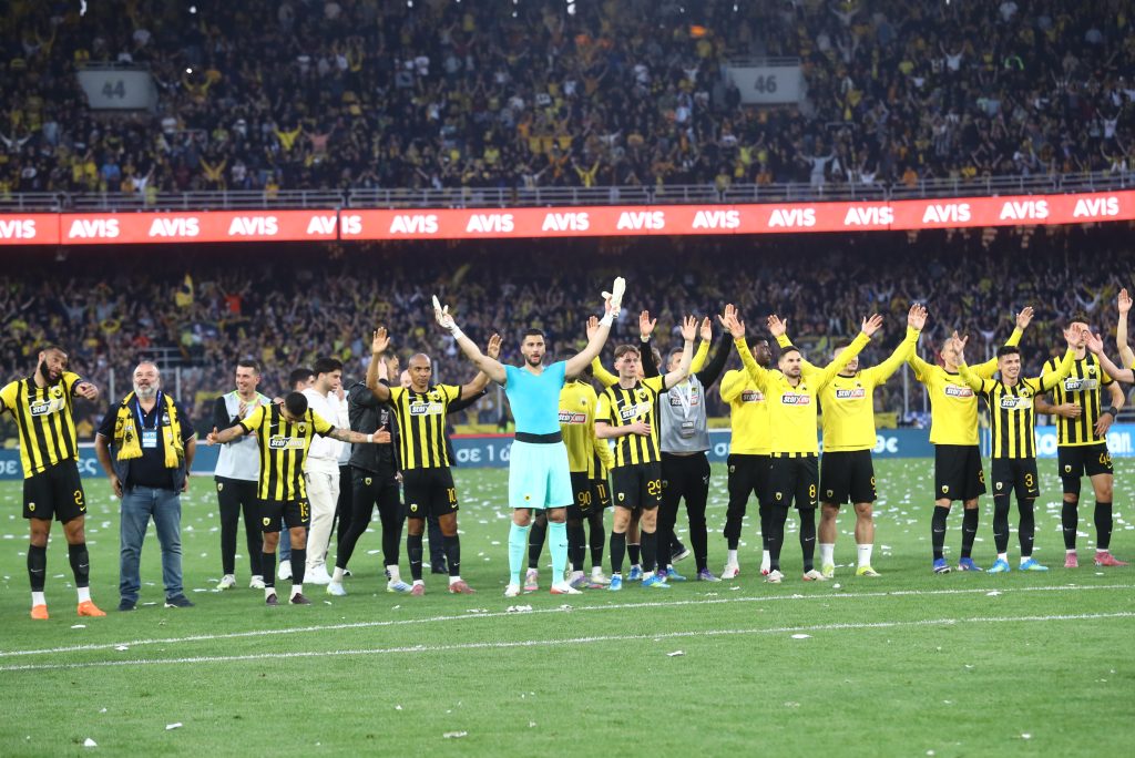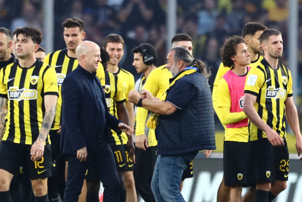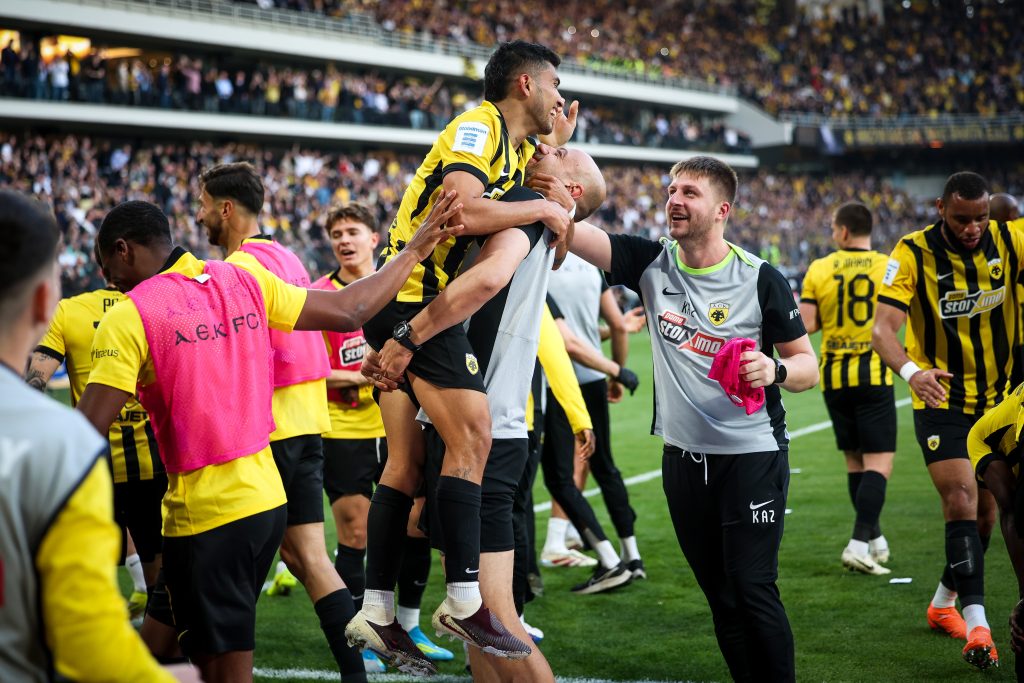 Η ΑΕΚ πήρε μεγάλη νίκη στο ντέρμπι με τον ΠΑΟΚ (3-0) και μετά το φινάλε η Allwyn Arena μετατράπηκε σε σκηνικό πανηγυρισμών, με παίκτες και κόσμο να γίνονται ένα.