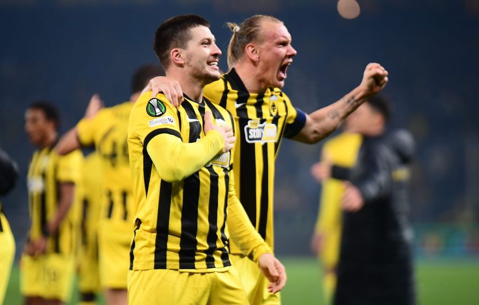 Η ΑΕΚ γύρισε από την κόλαση και πέταξε στους «16» 19/12/2025 Μια από τις πιο έντονες ευρωπαϊκές βραδιές της σύγχρονης ιστορίας της έζησε η ΑΕΚ στην OPAP Arena, επικρατώντας με 3-2 της Κραϊόβα και εξασφαλίζοντας την πρόκριση στη φάση των «16» του Conference League. Η Ένωση, παρά το γεγονός ότι βρέθηκε πίσω στο σκορ με δύο γκολ διαφορά, έδειξε χαρακτήρα και γύρισε ένα… χαμένο ματς στις καθυστερήσεις, ολοκληρώνοντας τη League Phase στην 3η θέση. Οι Μπαϊαράμ και Τσικαλντάου είχαν δώσει προβάδισμα 0-2 στην Κραϊόβα, βάζοντας δύσκολα στην ΑΕΚ. Ωστόσο, οι «κιτρινόμαυροι» δεν εγκατέλειψαν την προσπάθεια και πίεσαν μέχρι το τελευταίο δευτερόλεπτο. Η αρχή της αντεπίθεσης έγινε με το γκολ του Βίντα, ενώ στο 90+8’ ήρθε η ισοφάριση με τον Κουτέσα, σε ένα σημείο που η ΑΕΚ εξασφάλιζε ήδη θέση στην 8άδα. Παρ’ όλα αυτά, η Ένωση δεν αρκέστηκε στην ισοπαλία. Στις τελευταίες στιγμές, ο Βίντα κέρδισε πέναλτι, το οποίο εκτέλεσε εύστοχα ο Γιόβιτς, ολοκληρώνοντας μια ανατροπή που σφράγισε με εμφατικό τρόπο την πρόκριση στους «16». Απίθανες στιγμές στην OPAP Arena, με τον κόσμο να μετατρέπει σε ηφαίστειο το γήπεδο της Νέας Φιλαδέλφειας, αποθεώνοντας στο τέλος το σύνολο του Μάρκο Νίκολιτς που φέτος κάνει τα απίθανα… πιθανά! Οι «κιτρινόμαυροι» θα αντιμετωπίσουν μία εκ των Τσέλιε (13η), Άλκμααρ (14η), Νόα (19η) ή Ντρίτα (20η), με την κλήρωση να γίνεται στις 16 Ιανουαρίου. Με διάταξη 4-2-2-2 παρέταξε την ΑΕΚ ο Μάρκο Νίκολιτς. Στην εστία ο Στρακόσα, με τους Βίντα και Ρέλβας στο κέντρο της άμυνας, δεξί μπακ ο Ρότα και αριστερό ο Πήλιος. Στον άξονα της μεσαίας γραμμής οι Μαρίν και Μάνταλος, με τον Περέιρα (αριστερά) και τον Πινέδα (δεξιά) να κινούνται εσωτερικά μπροστά τους, ενώ ο Κοϊτά σε ρόλο περιφερειακού πίσω από τον Γιόβιτς, που ήταν στην κορυφή της επίθεσης. Σχηματισμός 3-4-3 για την Κραϊόβα από τον Φιλίπε Κοέλιο. Στο τέρμα ο Ισένκο, με τριάδα στην άμυνα από τα δεξιά προς τα αριστερά τους Ρομάντσουκ, Σκρέτσιου και Μπαντέλι. Στα χαφ οι Μεκβαμπισβίλι, Τσικαλντάου, με αριστερό μπακ-χαφ τον Μπάνκου και δεξί τον Τέλες. Εξτρέμ οι Ετίμ (δεξιά) και Μπαϊαράμ (αριστερά), με σέντερ φορ τον Αλ Χαμλαουί. Η ΑΕΚ μπήκε πολύ δυνατά στην αναμέτρηση και μόλις στο 3’ είχε την πρώτη της μεγάλη ευκαιρία: ωραία συνεργασία του Κοϊτά με τον Μαρίν, ο οποίος είδε τέλεια στην περιοχή τον Πινέδα, που εκτέλεσε αλλά ο Ισένκο του είπε «όχι». Η φάση δεν τελείωσε, με τον Κοϊτά να κάνει το σουτ, που βρήκε στο δοκάρι. Το πάνω χέρι στα πρώτα λεπτά το είχε η Ένωση με το boost που της έδινε ο κόσμος της και απείλησε με τις κεφαλιές των Πινέδα (8’) και Βίντα (10’). Μάλιστα, δευτερόλεπτα πριν συμπληρωθεί το πρώτο 20λεπτο ο Πινέδα ευνοήθηκε από την κόντρα, βρέθηκε σε ρόλο φορ και έκανε το σουτ, η μπάλα βρήκε στον Ρομάντσουκ και έφυγε λίγο πάνω από το οριζόντιο δοκάρι του Ισένκο. Από εκεί και μετά η Κραϊόβα ισορρόπησε την κατάσταση, πήρε μέτρα και άρχισε να γίνεται απειλητική από τα πλάγια. Στο 26’ οι Ρουμάνοι κράτησαν εξαιρετικά την μπάλα στα πόδια τους και προωθήθηκαν με ιδανικό τρόπο από τα δεξιά, ο Τέλες έβγαλε τη σέντρα, με τον Ετίμ να κάνει το σουτ, που έβγαλε με υπερένταση ο Στρακόσα. Έτσι, στο 30’ κατάφεραν να προηγηθούν στο σκορ με τον Μπαϊαράμ! Λάθος του Πινέδα στο ύψος της περιοχής, έδωσε το δικαίωμα στον Ετίμ να σουτάρει, με τον Στρακόσα να απομακρύνει και τον επιθετικό των φιλοξενούμενων να στέλνει, με εξουδετερωμένο τον Αλβανό γκολκίπερ, την μπάλα στα δίχτυα. Το 3-4-3 των Ρου
