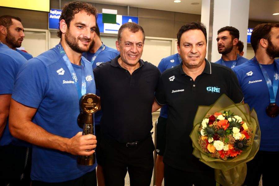 Η Εθνική πόλο ανδρών πάτησε στην Ελλάδα με το χάλκινο μετάλλιο (ΦΩΤΟ) 25/07/2025 Η Εθνική ομάδα πόλο ανδρών επέστρεψε στην Ελλάδα θριαμβεύτρια, έχοντας κατακτήσει το χάλκινο μετάλλιο στο Παγκόσμιο Πρωτάθλημα της Σιγκαπούρης. Στον μικρό τελικό, η ομάδα του Θοδωρή Βλάχου έκανε… πάρτι, επικρατώντας εύκολα της Σερβίας με 16-7, εξασφαλίζοντας έτσι το τρίτο σκαλί του βάθρου. Αυτή η επιτυχία ανέβασε τον συνολικό αριθμό των μεταλλίων της Ελλάδας στα παγκόσμια πρωταθλήματα πόλο στα 23, επιβεβαιώνοντας τη θέση της Εθνικής πόλο ως μια από τις πιο σταθερές και επιτυχημένες ομάδες σε παγκόσμιο επίπεδο. Οι παίκτες επέστρεψαν στο αεροδρόμιο «Ελευθέριος Βενιζέλος» γεμάτοι χαμόγελα και περηφάνια, κρατώντας ψηλά τα χάλκινα μετάλλια, για μια ακόμα μεγάλη στιγμή στην ιστορία του ελληνικού πόλο. ΔΙΑΒΑΣΤΕ ΕΠΙΣΗΣ