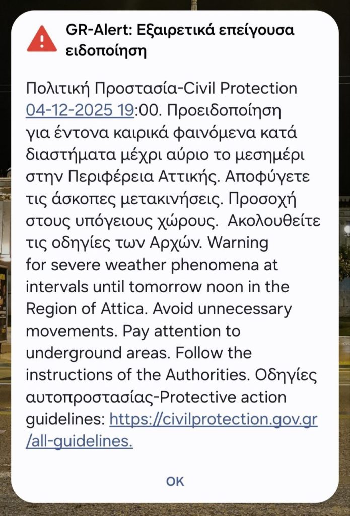 Κακοκαιρία Byron: Ήχησε το 112 στην Αττική 04/12/2025 Έντονα καιρικά φαινόμενα βρίσκονται σε εξέλιξη αυτήν την ώρα στην Αττική, καθώς η κακοκαιρία Byron συνεχίζει να επηρεάζει μεγάλο μέρος της χώρας. Μήνυμα από το «112» απεστάλη στους ανθρώπους που βρίσκονται στην Αττική, καθώς η κακοκαιρία Byron σαρώνει το Λεκανοπέδιο. Ισχυρές βροχές και καταιγίδες σημειώνονται σε πολλές περιοχές του Λεκανοπεδίου, με τους δρόμους σε αρκετά σημεία να έχουν μετατραπεί σε ποτάμια: Η κυκλοφορία διεξάγεται με δυσκολία, καθώς η κίνηση είναι ιδιαίτερα αυξημένη, έκλεισε η οδός Πειραιώς, από τη Χαμοστέρνας μέχρι την Πέτρου Ράλλη, λόγω συσσώρευσης υδάτων. Σύμφωνα με τον μετεωρολόγο του MEGA, Γιάννη Καλλιάνο, η νύχτα προβλέπεται ιδιαίτερα δύσκολη, ειδικά μετά τις 23:00. Εν τω μεταξύ, λόγω συσσώρευσης υδάτων, αυτήν την ώρα είναι κλειστή η Πειραιώς στο ύψος της Χαμοστέρνας έως την Πέτρου Ράλλη στο ρεύμα προς Αθήνα ενώ στην Ποσειδώνος η κυκλοφορία των οχημάτων διεξάγεται μόνο από την αριστερή λωρίδα κυκλοφορίας στο ύψος της συμβολής της με τη λεωφόρο Καλαμακίου στο ρεύμα προς Πειραιά. ΔΙΑΒΑΣΤΕ ΕΠΙΣΗΣ