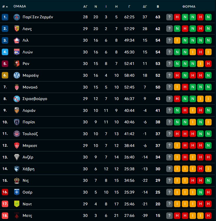 Στο Στρασβούργο, η Ρεν πέρασε εμφατικά με 3-0 και εκμεταλλεύτηκε την ήττα της Μαρσέιγ, ανεβαίνοντας στην 5η θέση. Ο Λεπόλ άνοιξε το σκορ στο 20’, ενώ οι Εμπολό και Ταμαρί «καθάρισαν» την υπόθεση νίκη στο δεύτερο ημίχρονο, με τους γηπεδούχους να δείχνουν επηρεασμένοι από τις ευρωπαϊκές τους υποχρεώσεις.