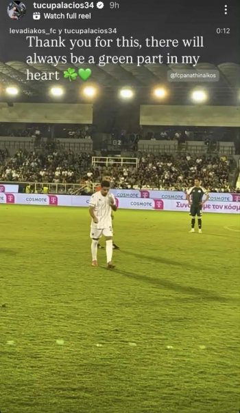 Με λόγια αγάπης μίλησε ο Παλάσιος για τον κόσμο του Παναθηναϊκού (ΦΩΤΟ) 01/09/2025 Την επιστροφή του στη Λεωφόρο συνόδευσαν έντονα συναισθήματα για τον Σεμπάστιαν Παλάσιος, καθώς ο κόσμος του Παναθηναϊκού τον υποδέχτηκε με θερμό χειροκρότημα. Ο Αργεντινός εξτρέμ, που στο παρελθόν αγωνίστηκε με επιτυχία στον Παναθηναϊκό, φορά πλέον τη φανέλα του Λεβαδειακού και χθες επέστρεψε στη Λεωφόρο ως αντίπαλος της πρώην ομάδας του. Ο κόσμος του «τριφυλλιού» δεν ξέχασε την προσφορά του και τον χειροκρότησε θερμά κατά τη διάρκεια της αλλαγής του, με τον ίδιο να ανταποδίδει. Στη συνέχεια έστειλε το δικό του μήνυμα και στα social media, γράφοντας χαρακτηριστικά: «Σας ευχαριστώ για αυτό, θα υπάρχει πάντα ένα πράσινο κομμάτι στην καρδιά μου». Δείτε το story του: ΔΙΑΒΑΣΤΕ ΕΠΙΣΗΣ