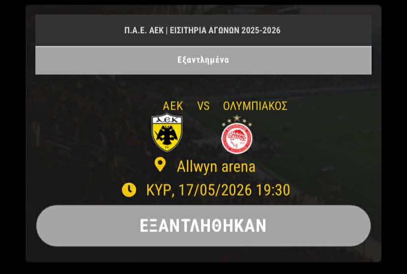 Η Ένωση βρίσκεται στο συν πέντε από Ολυμπιακό και ΠΑΟΚ μετά το χθεσινό μεγάλο διπλό στο «Καραϊσκάκης» και αυτή η εξέλιξη φαίνεται πως…. κινητοποίησε τους οπαδούς του Δικεφάλου που μπήκαν και εξαφάνισαν όλα τα εισιτήρια. Εάν μπει κάποιος στη σελίδα της ΠΑΕ ΑΕΚ και προσπαθήσει να κλείσει εισιτήρια θα δει ότι δεν υπάρχουν διαθέσιμα και υπάρχει η ένδειξη εξαντλήθηκαν.