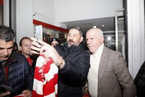 Οι φίλοι των ερυθρολεύκων είχαν την ευκαιρία να τον συναντήσουν στην μπουτίκ της ομάδας, όπου υπέγραψε αυτόγραφα και φωτογραφήθηκε μαζί τους.