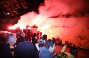 Η αποστολή της Ένωσης έφτασε στην πόλη της Μαγνησίας, όπου την περίμεναν εκατοντάδες φίλοι της ομάδας, δημιουργώντας μία τρομερή ατμόσφαιρα.
