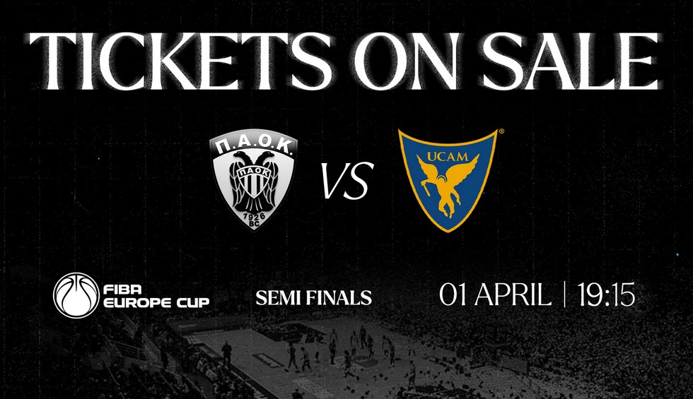 «Η ΚΑΕ ΠΑΟΚ ανακοινώνει ό,τι ξεκίνησε η διάθεση των εισιτηρίων για τον αγώνα ΠΑΟΚ – Murcia, τον πρώτο ημιτελικό του FIBA Europe Cup, που θα διεξαχθεί στο PAOK Sports Arena την Τετάρτη 1η Απριλίου 2026 στις 19:15. Ο ΠΑΟΚ είναι για δεύτερη συνεχόμενη χρονιά στους “4” της διοργάνωσης και ΟΛΟΙ ΜΑΖΙ, θα κάνουμε το πρώτο βήμα για την συμμετοχή στους τελικούς.