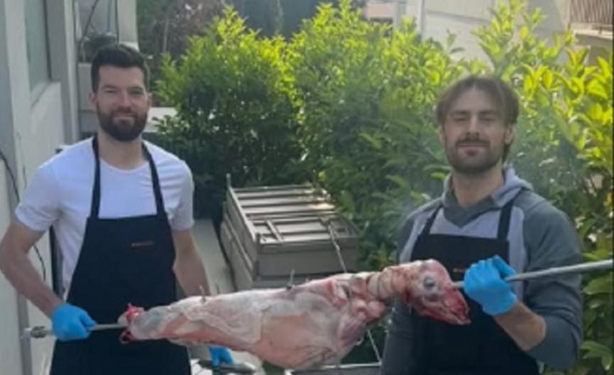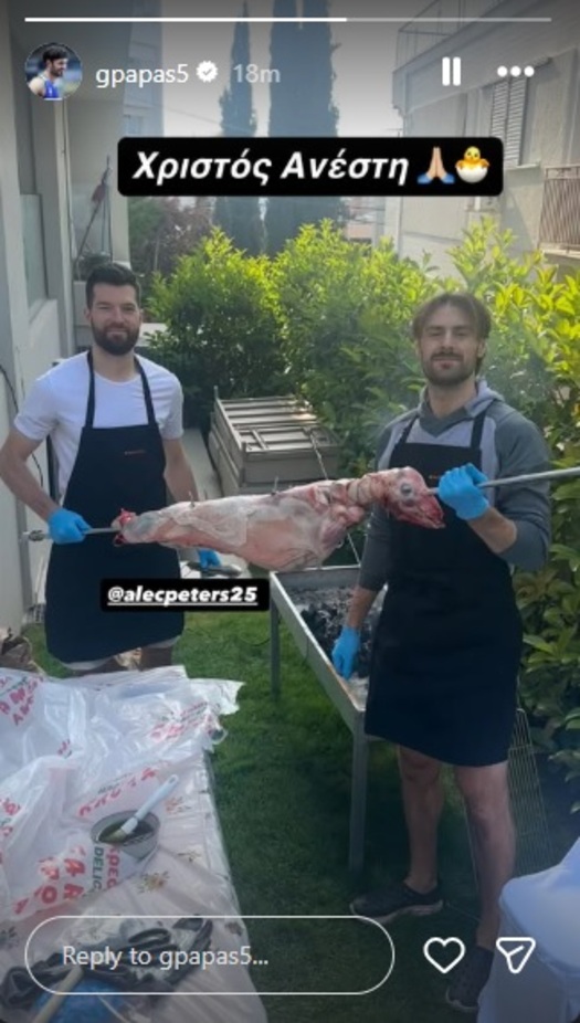 Στο κλίμα των εορτών μπήκαν Άλεκ Πίτερς και Τζορτζ Πάπας, οι οποίοι τήρησαν το ελληνικό έθιμο της Κυριακής του Πάσχα, σουβλίζοντας αρνί.
