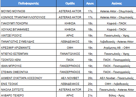 Ποινολόγιο Super League: Χωρίς τρεις ο Αστέρας με ΑΕΚ και έξι ο Βόλος με Ολυμπιακό (ΦΩΤΟ) 23/01/2026 Τρεις ποδοσφαιριστές του Αστέρα Τρίπολης δεν έχουν δικαίωμα συμμετοχής βάσει διατάξεων του Πειθαρχικού Κώδικα της ΕΠΟ κόντρα στην ΑΕΚ. Συγκεκριμένα, οι Αλάγκμπε, Τσίκο και Γιαμπλόνσκι δεν θα είναι στη διάθεση του Μίλαν Ράσταβατς για το ματς με την Ένωση. Από την άλλη, έξι ποδοσφαιριστές του Βόλου δεν έχουν δικαίωμα συμμετοχής κόντρα στον Ολυμπιακό. Πρόκειται για τους Κόμπα, Ασεχνούν, Σιαμπάνη, Χέρμανσον, Μύγα και Μαρτίνες. Αναλυτικά το ποινολόγιο της 18ης αγωνιστικής: Ποδοσφαιριστής – Ομάδα ΟΛΟΥΓΟΥΑΤΟΜΠΙΛΟΜΠΑ ΑΛΑΓΚΜΠΕ – ΑΣΤΕΡΑΣ ΤΡΙΠΟΛΗΣ ΧΟΥΛΙΑΝ ΤΣΙΚΟ – ΑΣΤΕΡΑΣ ΤΡΙΠΟΛΗΣ ΕΒΓΚΕΝΙ ΓΙΑΜΠΛΟΝΣΚΙ – ΑΣΤΕΡΑΣ ΤΡΙΠΟΛΗΣ ΜΙΓΙΑΤ ΓΚΑΤΣΙΝΟΒΙΤΣ – ΑΕΚ ΦΑΚΟΥΝΤΟ ΠΕΡΕΣ – ΑΕΛ ΔΗΜΗΤΡΗΣ ΣΤΑΥΡΟΠΟΥΛΟΣ – ΑΤΡΟΜΗΤΟΣ ΜΑΞΙΜΙΛΙΑΝΟ ΚΟΜΠΑ – ΒΟΛΟΣ ΝΤΑΒΙΝΤ ΜΑΡΤΙΝΕΣ – ΒΟΛΟΣ ΓΙΑΣΙΝ ΑΜΙΝ ΑΣΕΧΝΟΥΝ – ΒΟΛΟΣ ΜΑΡΙΟΣ ΣΙΑΜΠΑΝΗΣ – ΒΟΛΟΣ ΟΡΤΟΥΡ ΧΕΡΜΑΝΣΟΝ – ΒΟΛΟΣ ΓΙΩΡΓΟΣ ΜΥΓΑΣ – ΒΟΛΟΣ Έκτιση ποινών με επιλογή αγωνιστικών ημερών, σύμφωνα με το άρθρο 7, παρ. 4 του Πειθαρχικού Κώδικα της ΕΠΟ: ΔΙΑΒΑΣΤΕ ΕΠΙΣΗΣ