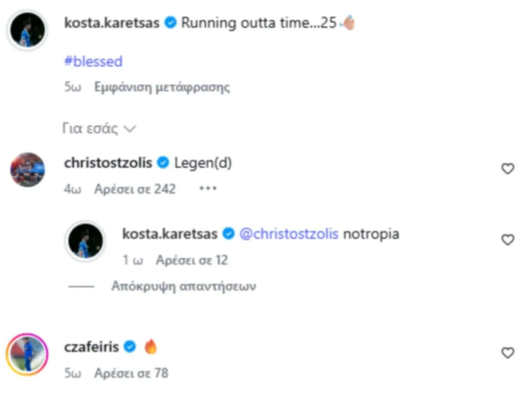 Πρωτοχρονιά στη Θεσσαλονίκη για τον Καρέτσα (ΦΩΤΟ) 02/01/2026 Στιγμές χαλάρωσης στην Ελλάδα εκμεταλλεύτηκε ο Κωνσταντίνος Καρέτσας, ο οποίος πέρασε την Πρωτοχρονιά στη Θεσσαλονίκη. Με το βελγικό πρωτάθλημα σε διακοπή, ο 18χρονος ποδοσφαιριστής της Γκενκ βρήκε την ευκαιρία να ταξιδέψει στη χώρα μας και να απολαύσει λίγες ημέρες ξεκούρασης. Μέσα από τα social media, μοιράστηκε φωτογραφίες από τις βόλτες του στη συμπρωτεύουσα, δείχνοντας να απολαμβάνει το εορταστικό κλίμα της πόλης. Κάτω από την ανάρτησή του δεν έλειψαν και τα σχόλια από γνώριμα πρόσωπα, καθώς τόσο ο Χρήστος Τζόλης όσο και ο Χρήστος Ζαφείρης, που βρίσκονται επίσης στη Θεσσαλονίκη, έσπευσαν να σχολιάσουν. ΔΙΑΒΑΣΤΕ ΕΠΙΣΗΣ