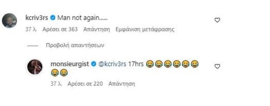 Ρίβερς και Γκιστ για την ανάρτηση Γιαννακόπουλου με πούλμαν: «Όχι πάλι…» (ΦΩΤΟ) 13/12/2024 Την… τραυματική προ εξαετίας εμπειρία τους (όταν επέστρεψαν με λεωφορείο από την Κωνσταντινούπολη) θυμήθηκαν οι Κέι Σι Ρίβερς και Τζέιμς Γκιστ. Με αφορμή το ποστάρισμα του Δημήτρη Γιαννακόπουλου με πούλμαν κατά τη διάρκεια του αποκαρδιωτικού αγώνα με την Εφές, οι πρώην άσοι του Παναθηναϊκού είχαν χαρακτηριστικό διάλογο στα social media. Πρώτα λοιπόν ο Αμερικανός γκαρντ έκανε ανάρτηση στην οποία ανέφερε: «Όχι πάλι…» Και έπειτα ο συμπατριώτης του απάντησε με βίντεο όπου ανέφερε μεταξύ άλλων χαμογελώντας: «Δεν είναι τίποτα, 17 ώρες. Δεν πιστεύω ότι θα γίνει πάλι, αλλά δεν είναι και τόσο άσχημο όσο φαίνεται. Ακόμα είναι νωρίς, υπάρχουν πολλά παιχνίδια μπροστά». ΔΙΑΒΑΣΤΕ ΕΠΙΣΗΣ
