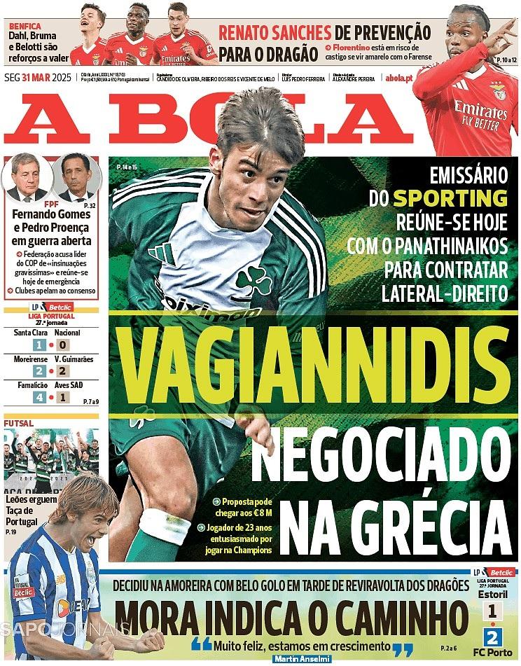 Συγκεκριμένα, η εφημερίδα υποστηρίζει πως θα γίνει διαπραγμάτευση στην Ελλάδα για τον 22χρονο μπακ, καθώς άνθρωπος του πορτογαλικού συλλόγου θα συναντηθεί σήμερα με ανθρώπους του Παναθηναϊκού για να διαπραγματευτεί την αγορά του Βαγιαννίδη.