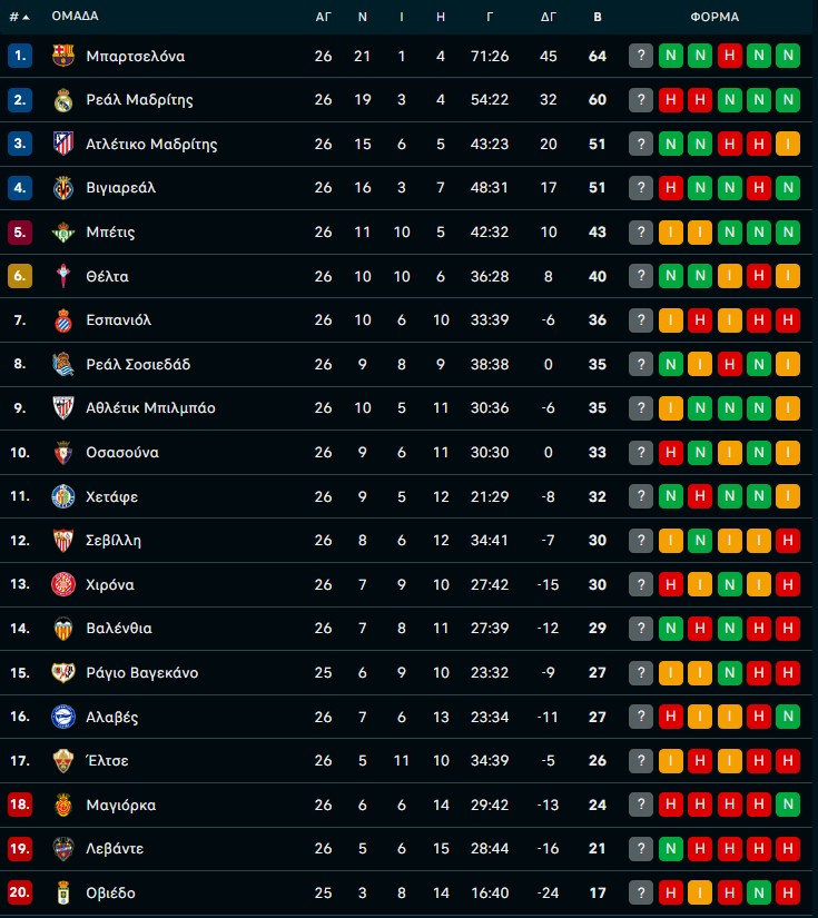 «Σοκ» στο Μπερναμπέου: Η Χετάφε λύγισε τη Ρεάλ και την άφησε στο -4 από την κορυφή (ΦΩΤΟ) 03/03/2026 Η Ρεάλ Μαδρίτης γνώρισε οδυνηρή ήττα με 1-0 από τη Χετάφε στο «Σαντιάγο Μπερναμπέου», αποτέλεσμα που την κράτησε στο -4 από την πρωτοπόρο Μπαρτσελόνα και προκάλεσε έντονες αποδοκιμασίες από το κοινό της. Παρά το θετικό μομέντουμ από την πρόκριση στους «16» του Champions League και το εντυπωσιακό σερί 16 διαδοχικών εντός έδρας νικών απέναντι στη Χετάφε, οι «μερένχες» δεν κατάφεραν να επιβεβαιώσουν τον τίτλο του φαβορί. Αντίθετα, η φιλοξενούμενη ομάδα έγραψε ιστορία, πανηγυρίζοντας την πρώτη εκτός έδρας νίκη της επί της Ρεάλ από το 2008. Το γκολ που έκρινε την αναμέτρηση σημειώθηκε στο 39ο λεπτό. Ο Μαρτίν Σατριάνο εξαπέλυσε ένα εντυπωσιακό σουτ εκτός περιοχής, «νικώντας» τον Κουρτουά και χαρίζοντας προβάδισμα στη Χετάφε. Στο πρώτο ημίχρονο οι φιλοξενούμενοι ήταν ιδιαίτερα απειλητικοί (0.41-0.42 τα xGoals), δείχνοντας πως δεν περιορίστηκαν σε παθητικό ρόλο. Στην επανάληψη, η Ρεάλ ανέβασε την έντασή της και δημιούργησε 2-3 σημαντικές ευκαιρίες, ωστόσο βρήκε απέναντί της μία εξαιρετικά οργανωμένη άμυνα. Η ομάδα του Χοσέ Μπορδαλάς διαχειρίστηκε με πειθαρχία το προβάδισμά της και κράτησε το μηδέν μέχρι το φινάλε. Η βραδιά ολοκληρώθηκε με αρνητικό τρόπο για τους γηπεδούχους, καθώς στο 90+5’ ο Μασταντουόνο αποβλήθηκε με απευθείας κόκκινη κάρτα, έπειτα από διάλογο με τον διαιτητή. Με το τελευταίο σφύριγμα, οι αποδοκιμασίες από τις εξέδρες επισφράγισαν τη δεύτερη διαδοχική ήττα της Ρεάλ στο πρωτάθλημα, μετά το 1-2 στην έδρα της Οσασούνα. Ρεάλ Μαδρίτης: Kουρτουά, Αλεξάντερ-Άρνολντ (55′ Καρβαχάλ), Ρούντιγκερ, Αλάμπα (55′ Χούισεν), Καρέρας, Βαλβέρδε, Γκιουλέρ (69′ Μασταντουόνο), Τσουαμενί (87′ Μπραχίμ Ντίαθ), Τιάγκο (55′ Ροντρίγκο), Γκονζάλο, Βινίσιους Χετάφε: Σόρια, Ιγκλέσιας, Μποσέγι, Ντουάρτε, Ρομέρο, Ρίκο, Φεμένια (58′ Λίσο), Μίγια, Αραμπάρι, Σατριάνο (90′ Άμπκαρ), Βάσκες (70′ Μαρτίν) Τα αποτελέσματα της 26ης αγωνιστικής: Λεβάντε – Αλαβές 2-0 (88′ 90+7′ Έσπι) Ράγιο Βαγεκάνο – Αθλέτικ 1-1 (35′ Ντε Φρούτος / 47′ Ινιάκι Γουίλιαμς) Μπαρτσελόνα – Βιγιαρεάλ 4-1 (28′ 37′ 69′ Γιαμάλ, 90+1′ Λεβαντόβσκι / 49′ Γκεΐγ) Μαγιόρκα – Σοσιεδάδ 0-1 (36′ Σολέρ) Οβιέδο – Ατλέτικο 0-1 (90+4′ Άλβαρες) Έλτσε – Εσπανιόλ 2-2 (42′ Αγκουάδο, 90′ πεν. Μιρ / 7′ Γκαρσία, 57′ Ρομέρο) Βαλένθια – Οσασούνα 1-0 (67′ πεν. Ραμαζάνι) Μπέτις – Σεβίλλη 2-2 (16′ Άντονι, 37′ Φιντάλγκο / 62′ Σάντσεθ, 85′ Ρομέρο) Χιρόνα – Θέλτα Βίγκο 1-2 (35′ Βάνατ / 58′ Χουτγκλά, 70′ αυτ. Ρέις) Ρεάλ Μαδρίτης – Χετάφε 0-1 (39′ Σατριάνο) Η βαθμολογία: ΔΙΑΒΑΣΤΕ ΕΠΙΣΗΣ