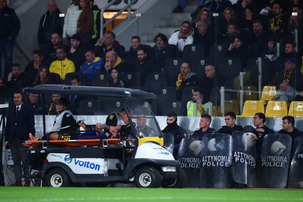 Σοβαρός τραυματισμός του Αλφαρέλα στο ΑΕΚ–Άρης (ΦΩΤΟ) 23/11/2025 Μια πολύ άσχημη στιγμή σημάδεψε το ΑΕΚ–Άρης στην OPAP Arena, με τον Αλφαρέλα να τραυματίζεται σοβαρά και να αποχωρεί μέσα σε εμφανή πόνο. Το ματς σταμάτησε αμέσως, ενώ το κοινό χειροκρότησε τον παίκτη του Άρη κατά την απομάκρυνσή του με φορείο. Ο Αλφαρέλα τραυματίστηκε σε μονομαχία με τον Μουκουντί, με τον παίκτη των κιτρίνων να νιώθει έντονο πόνο στον αστράγαλο και να μην μπορεί να συνεχίσει. Οι γιατροί έσπευσαν στο σημείο και έκριναν πως υπάρχει σοβαρό ζήτημα στο μετατάρσιο. Μάλιστα, προκειμένου να αφαιρεθεί το παπούτσι χωρίς να επιδεινωθεί η κατάσταση, οι άνθρωποι του ιατρικού τιμ αναγκάστηκαν να το κόψουν επιτόπου, ώστε να μην ασκηθεί επιπλέον πίεση στο σημείο του τραυματισμού. Η ανησυχία είναι έντονη στον Άρη, με τις πρώτες ενδείξεις να κάνουν λόγο για σημαντικό πρόβλημα που θα ξεκαθαρίσει πλήρως μετά τις απαραίτητες εξετάσεις. ΔΙΑΒΑΣΤΕ ΕΠΙΣΗΣ