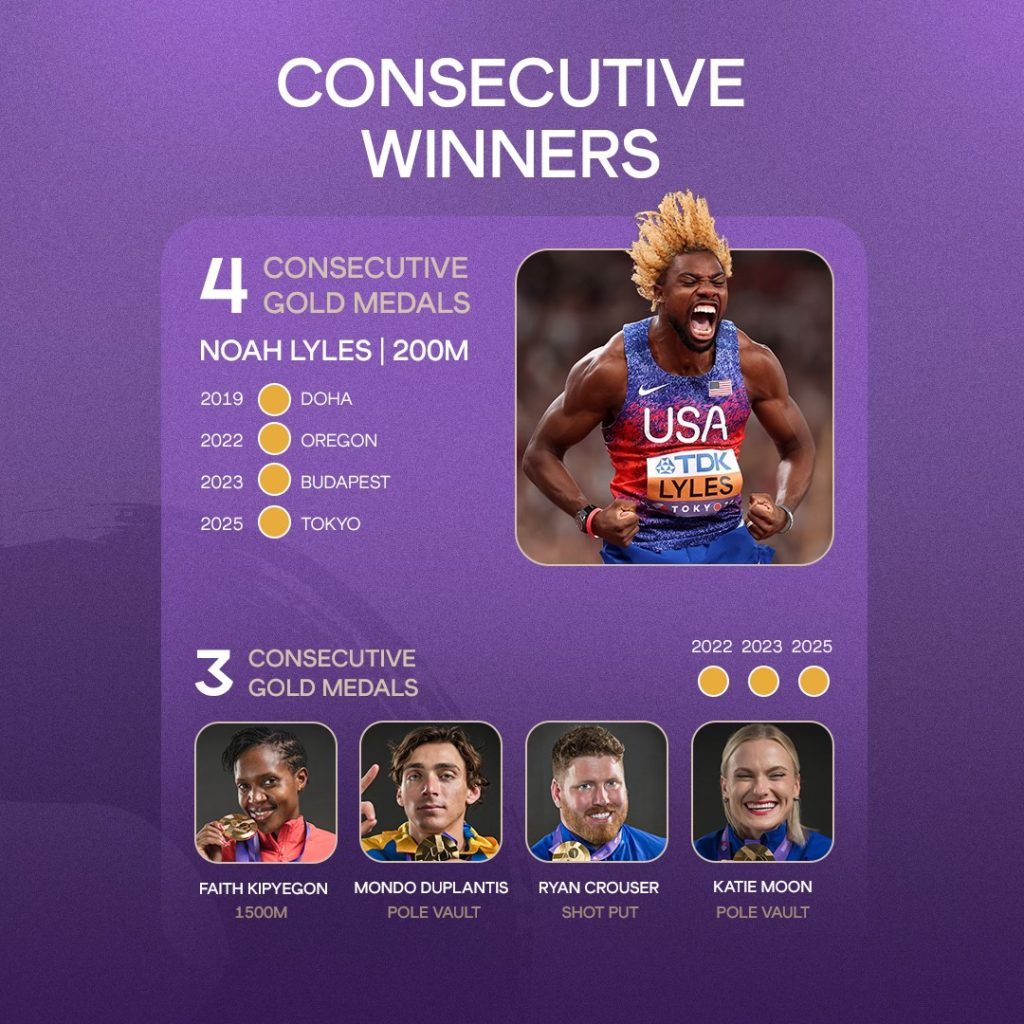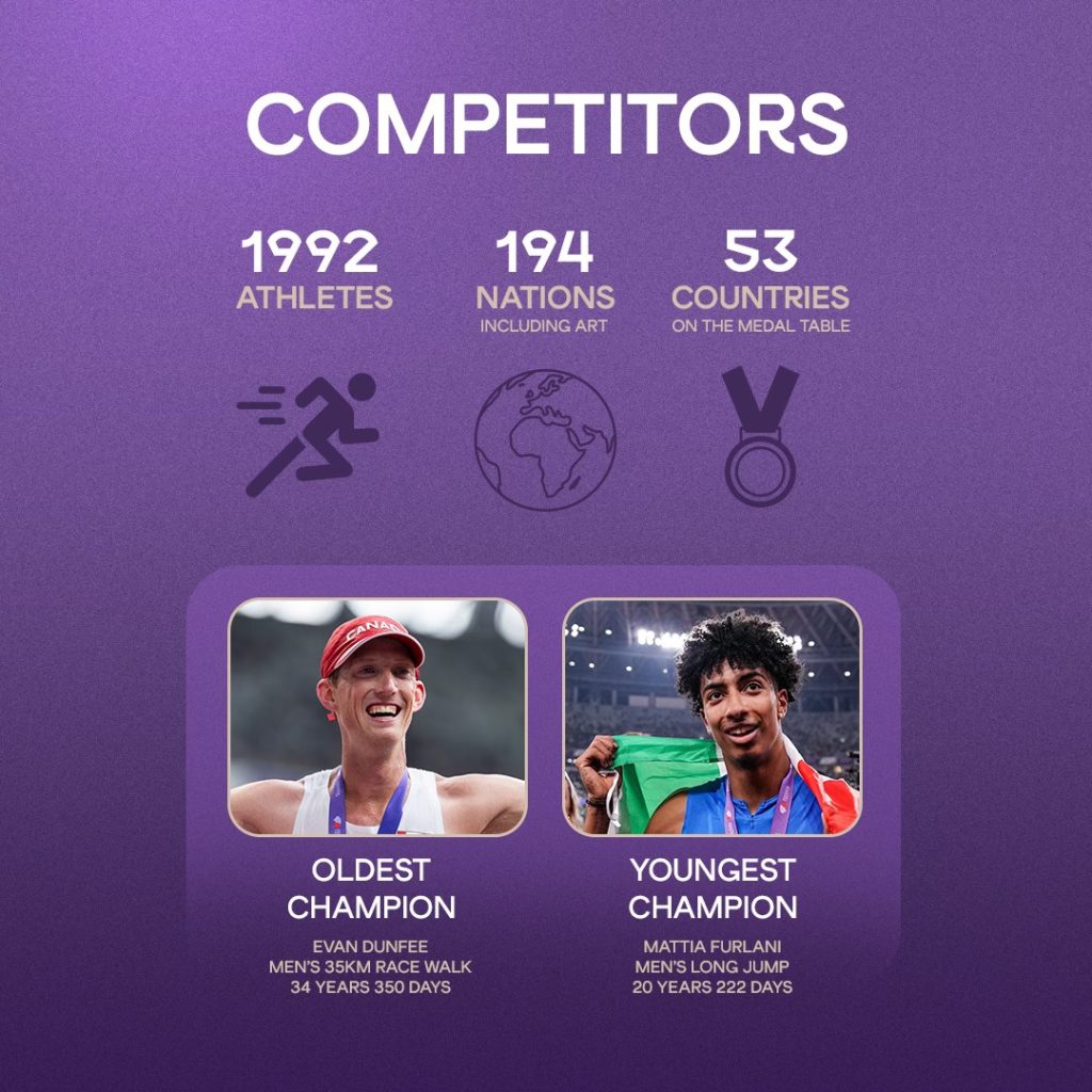 Στίβος: Το Παγκόσμιο Πρωτάθλημα με… μια ματιά (ΦΩΤΟ) 24/09/2025 Η Διεθνής Ομοσπονδία στίβου, με γραφικά που εντυπωσιάζουν, έδωσε την εικόνα του Παγκόσμιου Πρωταθλήματος που έγινε στο Τόκιο και σύμφωνα με την Worldathletics ήταν το πιο επιδραστικό στην ιστορία της διοργάνωσης. Ας δούμε, λοιπόν, με μια ματιά, τι έγινε στους αγώνες της ιαπωνικής πρωτεύσας, η οποία φιλοξένησε για δεύτερη φορά (η πρώτη ήταν το 1991) το Παγκόσμιο Πρωτάθλημα, ΔΙΑΒΑΣΤΕ ΕΠΙΣΗΣ