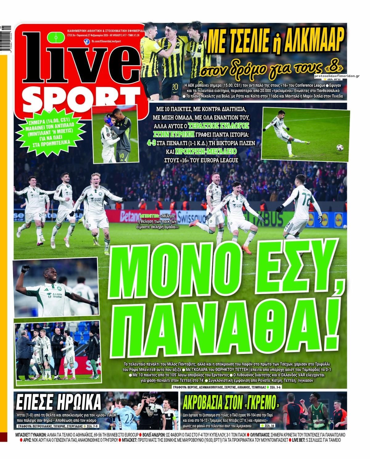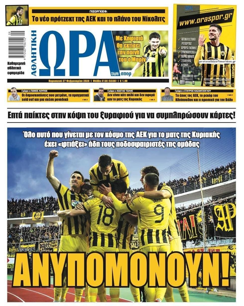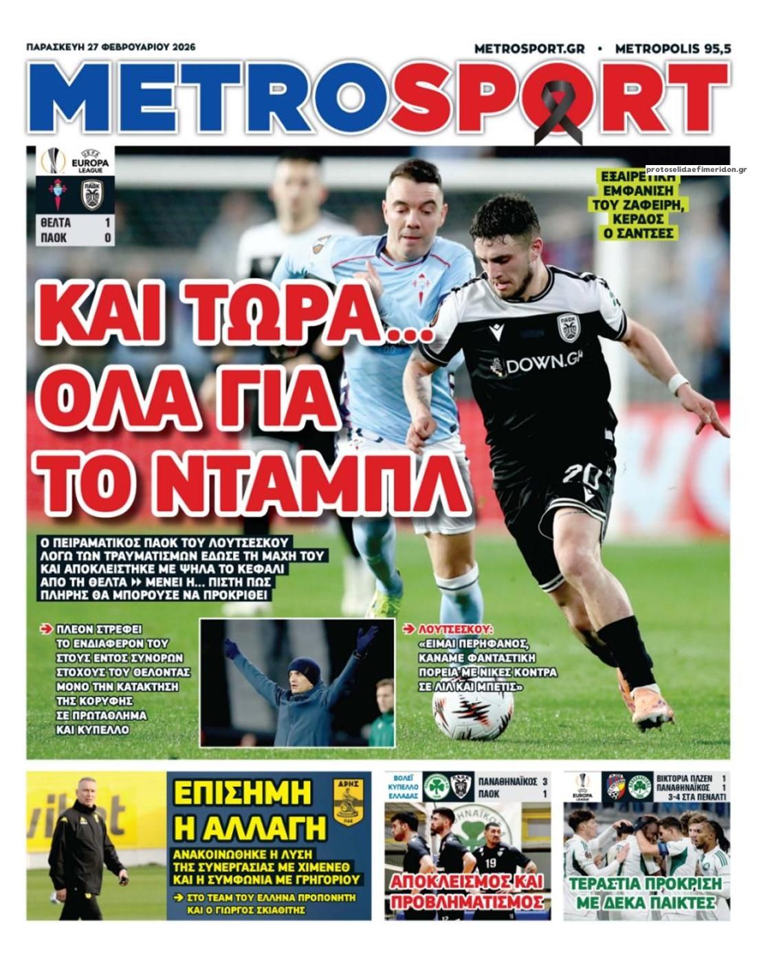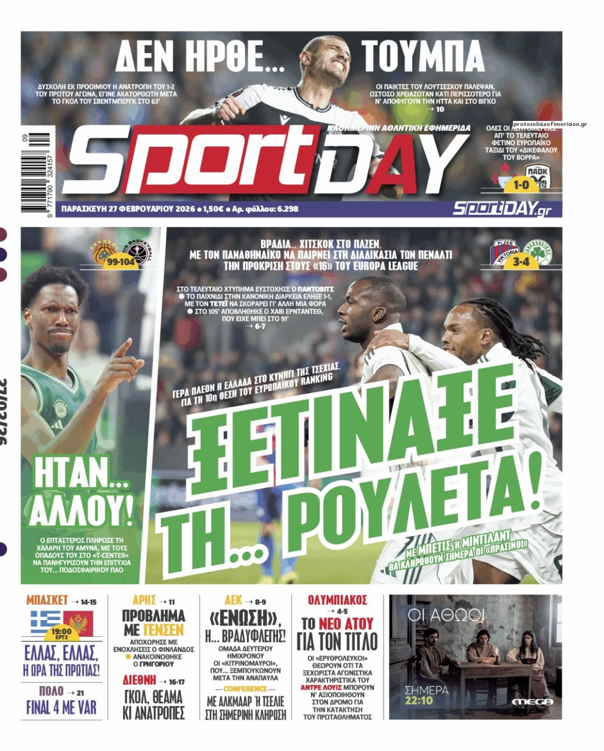 Τα πρωτοσέλιδα των αθλητικών εφημερίδων (ΦΩΤΟ) 27/02/2026 Διαβάστε τα πρωτοσέλιδα των αθλητικών εφημερίδων της ημέρας: ΔΙΑΒΑΣΤΕ ΕΠΙΣΗΣ