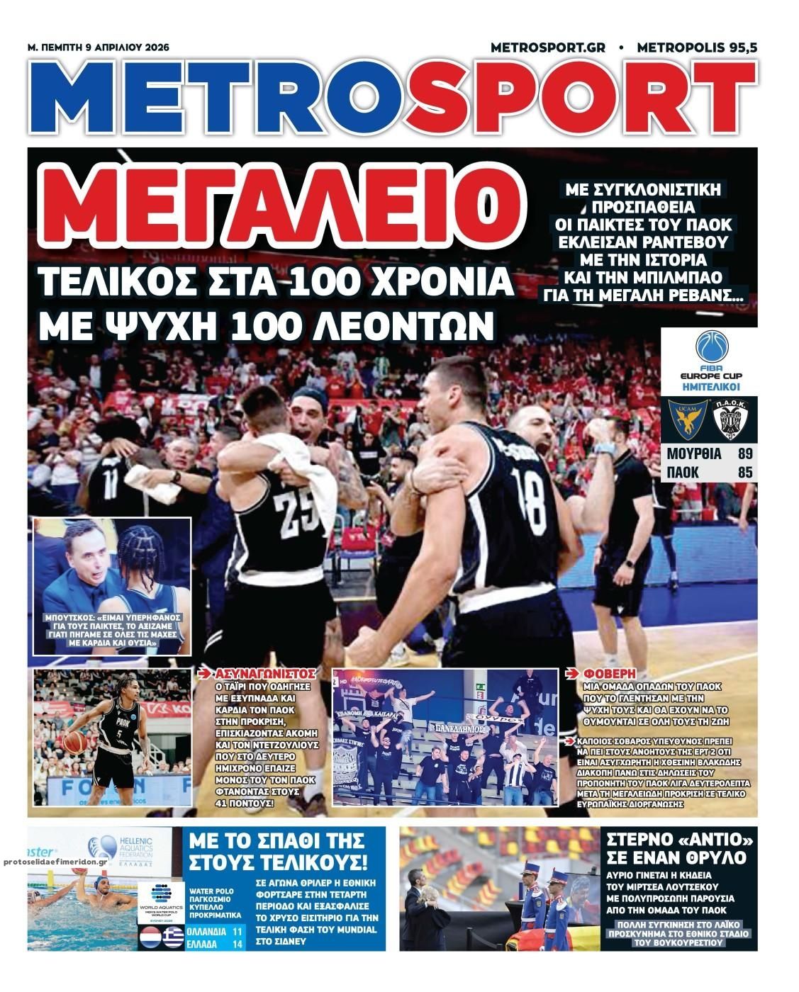 Τα πρωτοσέλιδα των αθλητικών εφημερίδων (ΦΩΤΟ) 09/04/2026 Διαβάστε τα πρωτοσέλιδα των αθλητικών εφημερίδων της ημέρας: ΔΙΑΒΑΣΤΕ ΕΠΙΣΗΣ
