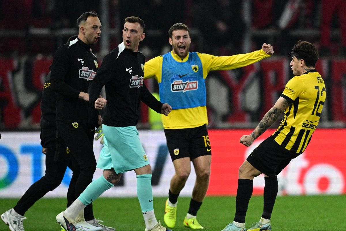 Το απόλυτο κοντράστ συναισθημάτων στο φινάλε του Ολυμπιακός – ΑΕΚ (ΦΩΤΟ) 05/04/2026 Roller coaster συναισθημάτων στο “Γ. Καραϊσκάκης”, καθώς από την “τρέλα” της ισοφάρισης στο 90+8′ με την βολίδα του Γιουσούφ Γιαζίτσι, άπαντες στον Ολυμπιακό προσγειώθηκαν απότομα μετά την ακύρωση του τέρματος από τον Τομπίας Στίλερ. Ακριβώς το αντίθετο έγινε στο κιτρινόμαυρο στρατόπεδο, αφού οι παίκτες της ΑΕΚ από εκεί που βρέθηκαν πεσμένοι στον αγωνιστικό χώρο μετά από ακόμα μία ισοφάριση στις καθυστερήσεις, ξέσπασαν σε έξαλλους πανηγυρισμούς όταν είδαν τον Γερμανό διαιτητή να καταλογίζει οφσάιντ στον Λορέντσο Πιρόλα, με συνέπεια να φύγουν από το Φάληρο με το τεράστιο διπλό (0-1). Δείτε στιγμές από το κοντράστ των συναισθημάτων: ΔΙΑΒΑΣΤΕ ΕΠΙΣΗΣ