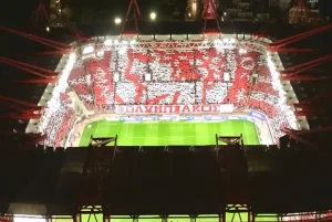 Το εντυπωσιακό κορεό στο «Γ. Καραϊσκάκης» για τα 100 χρόνια του Ολυμπιακού (ΦΩΤΟ) 09/03/2025 Ο Ολυμπιακός υποδέχτηκε τον ΟΦΗ στο «Γ. Καραϊσκάκης» για την τελευταία αγωνιστική της κανονικής περιόδου στη Super League, σε μια αναμέτρηση με ξεχωριστή σημασία για τον σύλλογο. Οι «ερυθρόλευκοι» γιόρτασαν τα 100 χρόνια από την ίδρυση του συλλόγου, με τον κόσμο να δείχνει τη στήριξή του με έναν μοναδικό τρόπο. Το γήπεδο ήταν γεμάτο, καθώς δεν υπήρχε ούτε μία κενή θέση, κάτι που συνέβαλε η πρωτοβουλία της ΠΑΕ να επιτρέψει τη μεταβίβαση των διαρκείας. Οι φίλαθλοι του Ολυμπιακού υποδέχτηκαν τις δύο ομάδες με ένα εντυπωσιακό κορεό, το οποίο κάλυπτε ολόκληρο το στάδιο, δημιουργώντας μια εκπληκτική ατμόσφαιρα για τον εορτασμό των 100 χρόνων του συλλόγου. ΔΙΑΒΑΣΤΕ ΕΠΙΣΗΣ
