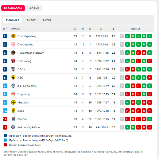 Το πανόραμα της GBL: Μόνος τρίτος ο Προμηθέας – Έπιασε στο 7-7 τον ΠΑΟΚ ο Πανιώνιος