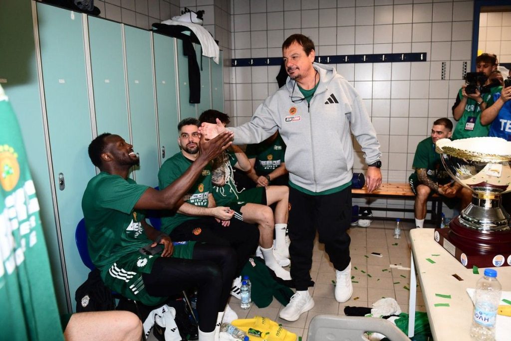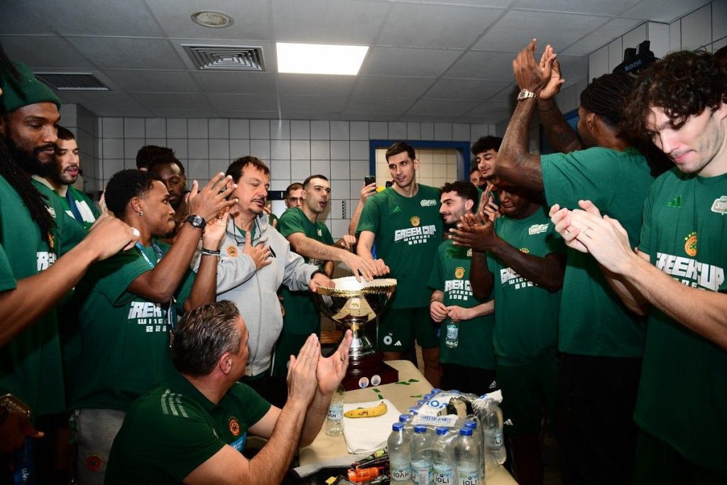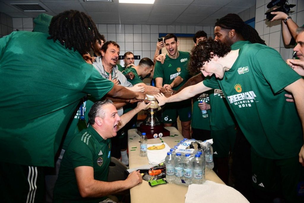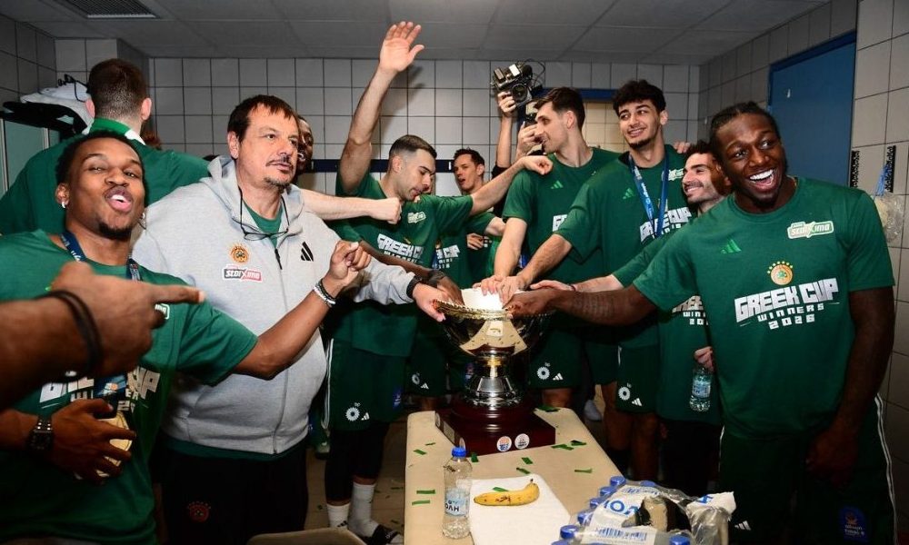 Το «πράσινο» πάρτι στα αποδυτήρια μετά την κατάκτηση του Κυπέλλου (ΦΩΤΟ) 21/02/2026 Οι παίκτες του Παναθηναϊκού πανηγύρισαν με ένταση την κατάκτηση του Κυπέλλου Ελλάδας Μπάσκετ και μετέφεραν τη χαρά τους και στα αποδυτήρια, όπου δεν έλειψαν οι αναμνηστικές φωτογραφίες. Μετά το 79-68 στον τελικό του Allwyn Final 8, οι «πράσινοι» ξέσπασαν σε πανηγυρισμούς, γιορτάζοντας όλοι μαζί την επιτυχία. Σε κλίμα απόλυτης ευφορίας, οι Κυπελλούχοι πόζαραν με το τρόπαιο, με τον Εργκίν Αταμάν να βρίσκεται στο επίκεντρο, καθώς οι παίκτες τον αποθέωσαν στις στιγμές που ακολούθησαν την απονομή. ΔΙΑΒΑΣΤΕ ΕΠΙΣΗΣ