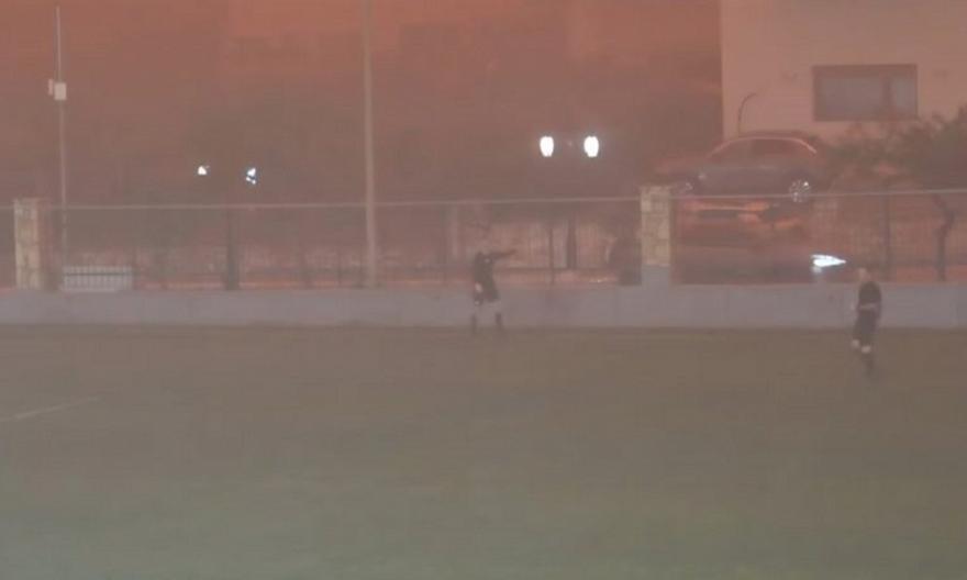 Το παιχνίδι ανάμεσα στον Γιούχτα και το Χαϊδάρι για τη Γ’ Εθνική του ελληνικού ποδοσφαίρου, που έληξε 1-1, πήρε πολύ άσχημη τροπή, λόγω της κακοκαρίας Erminio που έπληξε την Κρήτη και δημιούργησε μία απίθανη είκονα και διακοπή 40 λεπτών.
