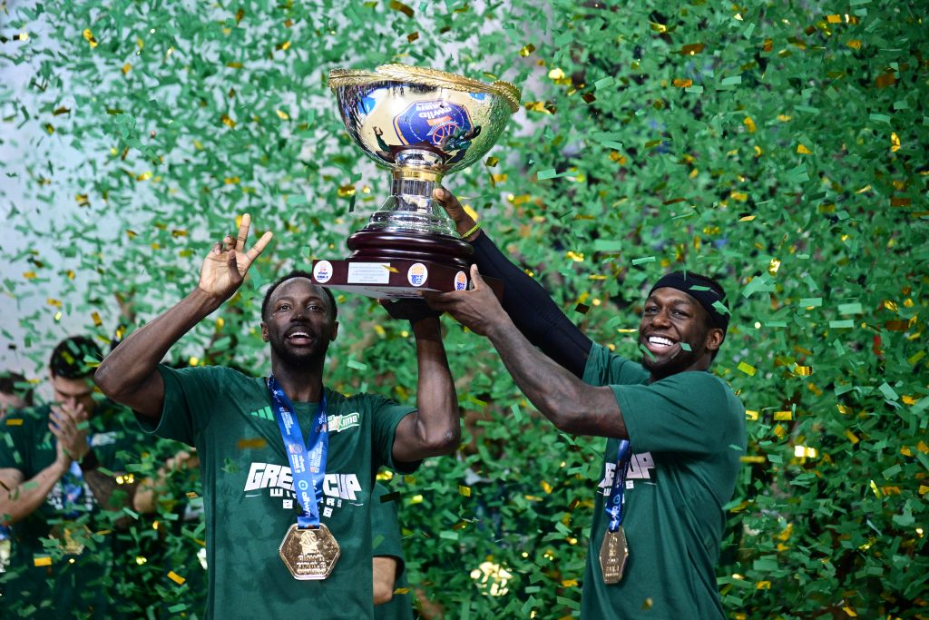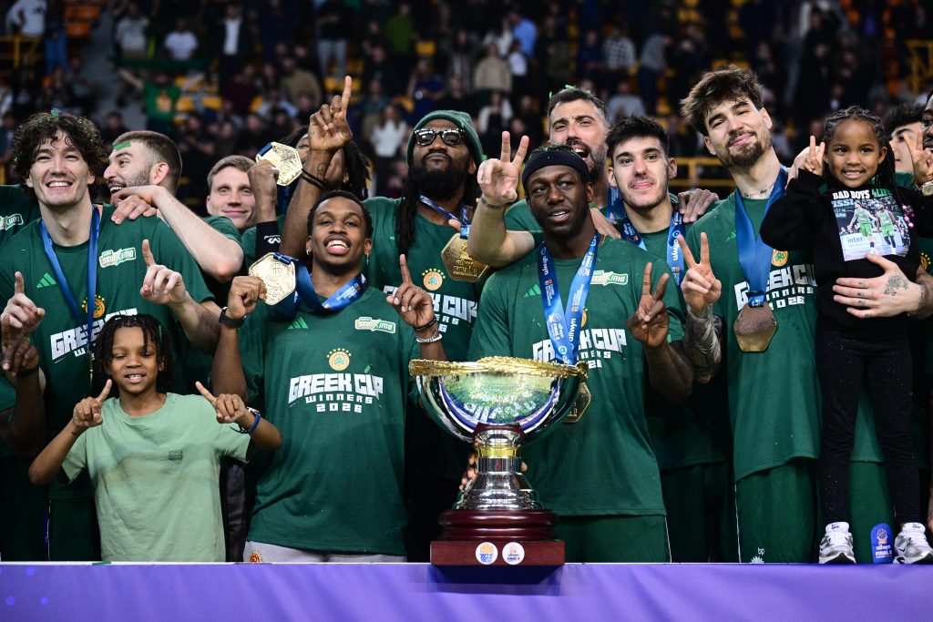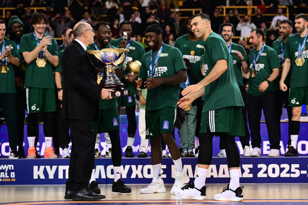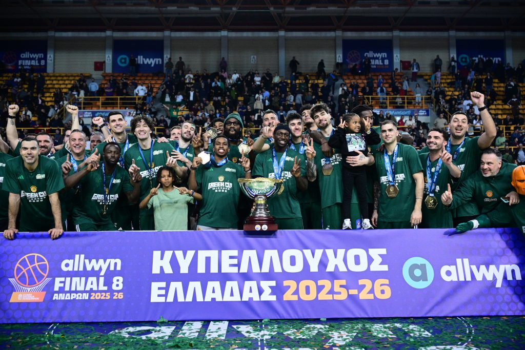 ΒΙΝΤΕΟ & ΦΩΤΟ: Η «πράσινη» απονομή του Κυπέλλου 21/02/2026 Ο Παναθηναϊκός γιόρτασε την κατάκτηση του 22ου Κυπέλλου Ελλάδας και η στιγμή της απονομής είχε ξεχωριστό συμβολισμό, με τον Κώστα Σλούκα να καλεί τους Κέντρικ Ναν και Τζέριαν Γκραντ να σηκώσουν το τρόπαιο μέσα σε αποθέωση. Οι «πράσινοι» είχαν προηγουμένως επιβληθεί 79-68 του Ολυμπιακού στον τελικό του Allwyn Final 8, φτάνοντας για δεύτερη συνεχόμενη χρονιά στην κορυφή της διοργάνωσης. Μετά το τελευταίο σφύριγμα, ακολούθησαν πανηγυρισμοί στο παρκέ και στη συνέχεια η απονομή, με τον πρόεδρο της ΕΟΚ Βαγγέλη Λιόλιο να απονέμει τα μετάλλια στους Κυπελλούχους. Όταν ήρθε η ώρα για την κούπα, ο αρχηγός του Παναθηναϊκού επέλεξε να δώσει το τρόπαιο στους Ναν και Γκραντ, σε μια κίνηση που αποθεώθηκε από τον κόσμο στις εξέδρες. Οι παίκτες έγιναν ένα κουβάρι στο κέντρο του παρκέ, γιορτάζοντας τον τίτλο μαζί με τους οπαδούς τους. ΔΙΑΒΑΣΤΕ ΕΠΙΣΗΣ