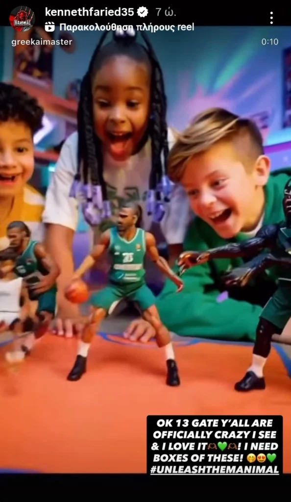 Μάλιστα, ένας λογαριασμός που δημιουργεί βίντεο με τεχνητή νοημοσύνη μετέτρεψε τον «Manimal» σε παιχνίδι/φιγούρα που καρφώνει και γίνεται «θηρίο»! Ο Φαρίντ είδε το βίντεο και φάνηκε ενθουσιασμένος, αναδημοσιεύοντάς το στον προσωπικό του λογαριασμό στο Instagram και στέλνοντας μήνυμα στους οπαδούς του Παναθηναϊκού: