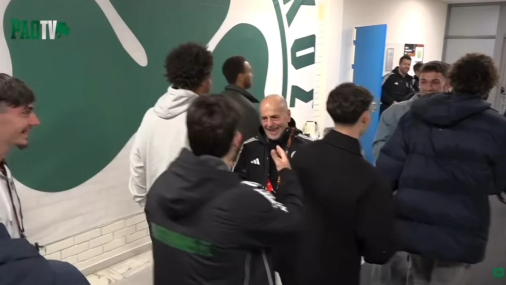 Μετά το τελευταίο σφύριγμα, ο Γιάννης Αλαφούζος βρέθηκε στα αποδυτήρια του ΟΑΚΑ για να υποδεχθεί τους παίκτες της ομάδας, με τον πρόεδρο της «πράσινης» ΠΑΕ να αγκαλιάζει και τον Αργεντινό χαφ.