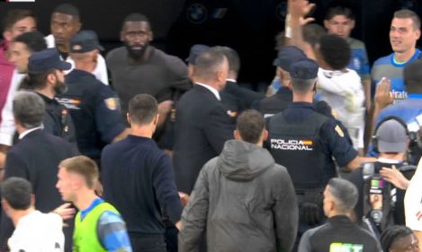ΒΙΝΤΕΟ: Τσαμπουκάδες στο φινάλε του σούπερ ντέρμπι, παρενέβη η αστυνομία 27/10/2025 Με ένταση ολοκληρώθηκε το clasico μεταξύ Ρεάλ Μαδρίτης και Μπαρτσελόνα στο «Μπερναμπέου», με τον αγώνα να κρίνεται υπέρ των γηπεδούχων (2-1), αλλά το φινάλε να σημαδεύεται από τσαμπουκάδες και γενική σύρραξη. Παικτες και μέλη των staff των δύο ομάδων ήρθαν σε αντιπαράθεση, με τον Ραφίνια να μπαίνει στη σύρραξη ακόμα και με πολιτικά, καθώς δεν αγωνίστηκε λόγω τραυματισμού. Η αστυνομία επενέβη μπροστά στη φυσούνα για να χωρίσει το πλήθος και να εκτονωθεί η ένταση, ενώ οι ποδοσφαιριστές της Ρεάλ παρέμειναν στον αγωνιστικό χώρο για να πανηγυρίσουν τη νίκη τους. VINÍCIUS JR defendiendo este escudo ante los ladrones del Barcelona 👏🏻👏🏻👏🏻pic.twitter.com/9cDzVN7Xsu — (fan) REAL MADRID FANS 🤍 (@AdriRM33) October 26, 2025 ΔΙΑΒΑΣΤΕ ΕΠΙΣΗΣ