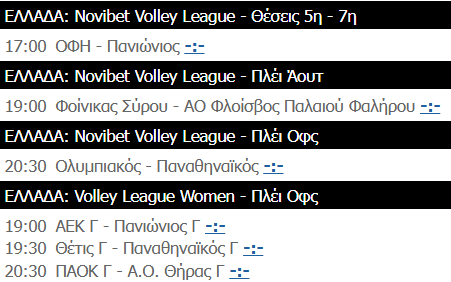 Volley League: Κρίσιμη σύγκρουση «αιωνίων» στο Ρέντη (ΦΩΤΟ) 28/03/2026 Η δράση στη Volley League Ανδρών συνεχίζεται και το Σάββατο (28/03) θα διεξαχθεί ο δεύτερος ημιτελικός μεταξύ Ολυμπιακού και Παναθηναϊκού στο «Μελίνα Μερκούρη», με τους πράσινους να προηγούνται με 1-0, έχοντας και το πλεονέκτημα έδρας. Ο αγώνας είναι προγραμματισμένος στις 20:30 και μπορείτε να τον παρακολουθήσετε από την ΕΡΤ2 ΣΠΟΡ. Η πρόκριση στον τελικό κρίνεται στις 3 νίκες. Το πρόγραμμα της ημέρας περιλαμβάνει επίσης τον αγώνα του ΟΦΗ με τον Πανιώνιο για τη μάχη κατάταξης 5-7, αλλά και το Φοίνικας Σύρου-Φλοίσβος για τα πλέι άουτ. Φυσικά, η δράση συνεχίζεται και στη Volley League Γυναικών με τρεις προημιτελικούς: ΑΕΚ-Πανιώνιος, Θέτιδα-Παναθηναϊκός και ΠΑΟΚ-ΑΟ Θήρας. ΔΙΑΒΑΣΤΕ ΕΠΙΣΗΣ