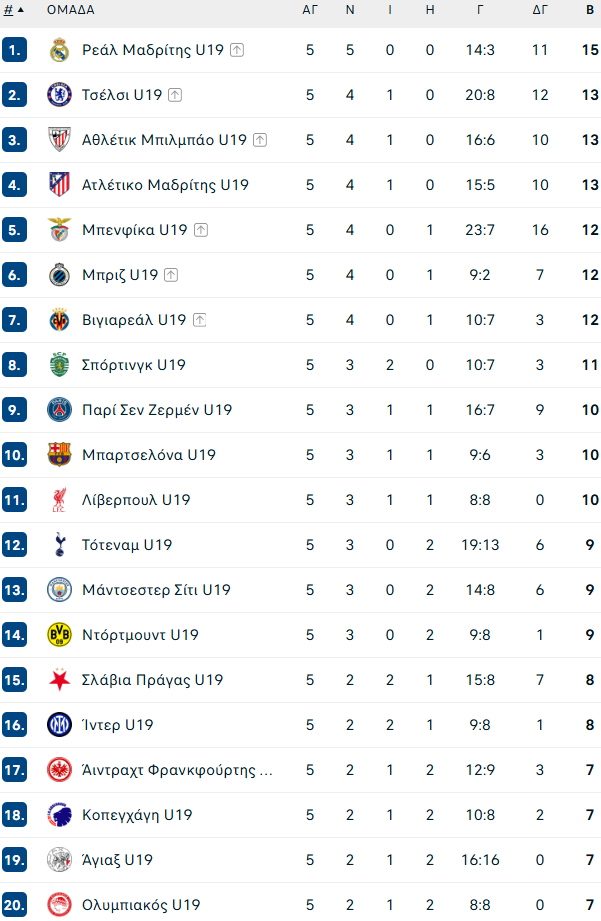 Youth League: Ο Ολυμπιακός διατηρεί ελπίδες πρόκρισης παρά την ήττα από τη Ρεάλ – Η βαθμολογία