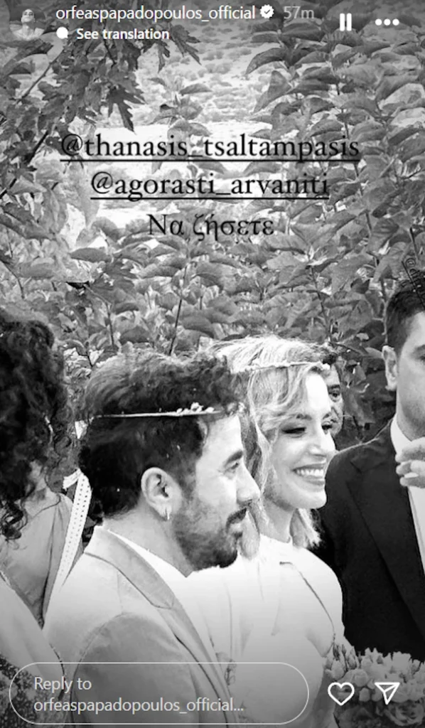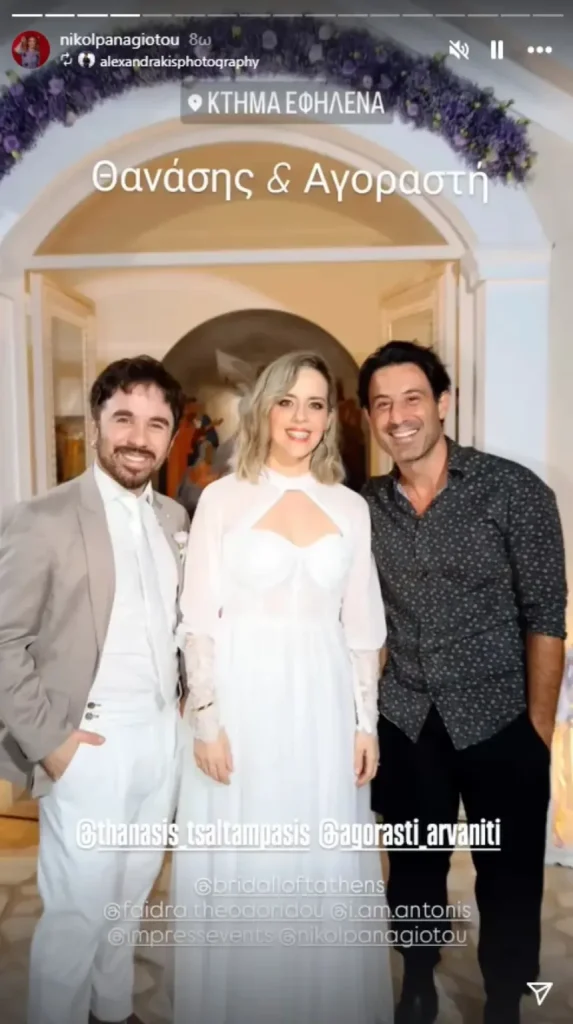 Ζευγάρι Ελλήνων ηθοποιών παντρεύτηκε με θρησκευτικό γάμο – Διέρρευσαν φωτογραφίες 07/10/2024 Ο Θανάσης Τσαλταμπάσης και η αγαπημένη του, Αγοραστή Αρβανίτη, ενώθηκαν με τα ιερά δεσμά του γάμου. Το απόγευμα της Κυριακής 6 Οκτωβρίου οι δύο ηθοποιοί ανέβηκαν τα σκαλιά της εκκλησίας στο Κορωπί, λίγους μήνες μετά τη γέννηση της κόρης τους. Το ζευγάρι έχει επιλέξει να κρατά χαμηλό προφίλ στη σχέση του, γι’ αυτό και δεν είχαν γίνει περισσότερες λεπτομέρειες γνωστές για την ημέρα του γάμου τους. Στο μυστήριο υπήρχαν και καλεσμένοι από τον καλλιτεχνικό χώρο, οι οποίοι τίμησαν με την παρουσία τους το ζευγάρι. Η Ντορέττα Παπαδημητρίου, η Νικόλ Παναγιώτου και ο Ορφέας Παπαδόπουλος που ήταν εκεί, μοιράστηκαν φωτογραφίες από το μυστήριο, αλλά και από τη δεξίωση που ακολούθησε, δίνοντάς μας μια γεύση από τον γάμο του ζευγαριού. ΔΙΑΒΑΣΤΕ ΕΠΙΣΗΣ